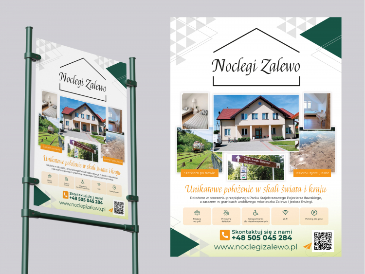 Dzień dobry, dziękuje za informacje. Naniosłem poprawki, proszę się zapoznać z nimi. Chwilowo zostawiłem kod QR, jednakże nie jest to kod z Państwa strony. Ten kod wygenerowałem sam i prowadzi on bezpośrednio na Państwa stronę www, proszę sprawdzić. Pod linkiem poprawiony projekt: https://whitedog.com.pl/noclegi/plakat.jpg