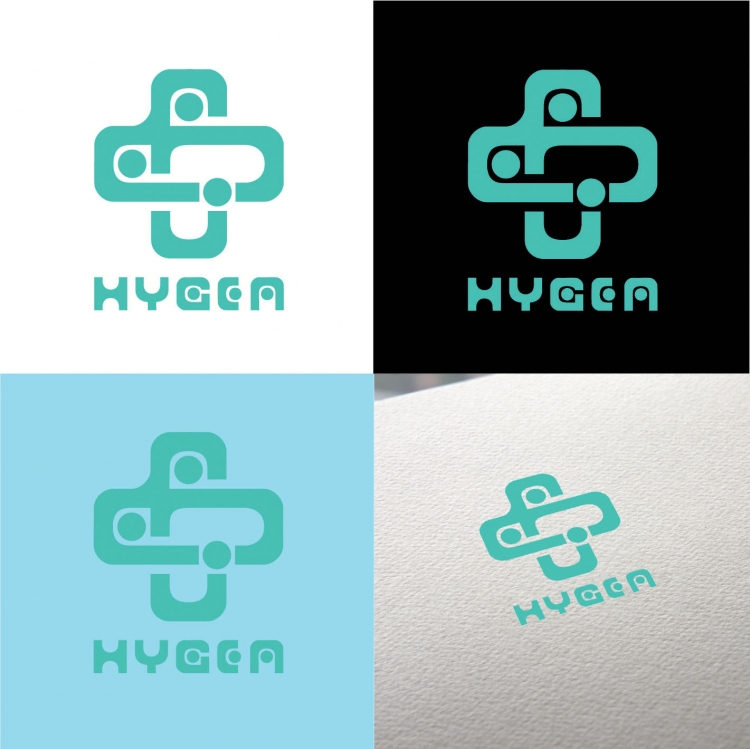 Inspiracją do nazwy i powstania logo jest gracka Bogini Higieja z łac. Hygea – w mitologii greckiej bogini i uosobienie zdrowia. Na logo możemy zauważyć splątanego węża tworzącego krzyż w kształcie plastra. Po głębszej analizie możemy zauważyć znaki graficznie symbolizujące pacjentów i sanitariuszy. Koła są głowami. Logo zainspirowało również do stworzenia czcionki w której również można zauważyć postacie.