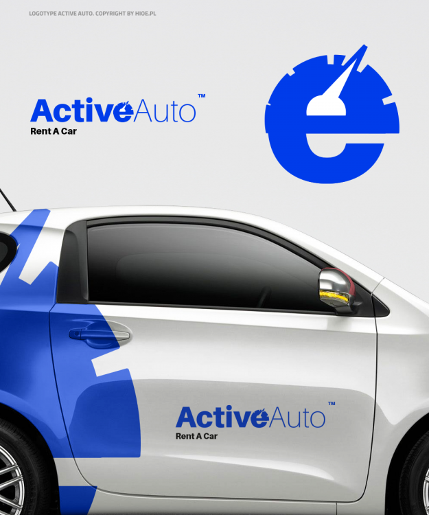 Geneza logotypu: Połączenie litery "e" z prędkościomierzem. /// Pełen podgląd: www.hioe.pl/Mateusz/2017/ActiveAuto/1.png