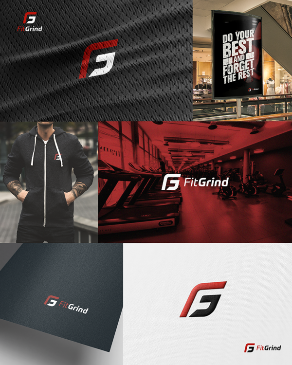 Nowa propozycja na logo dla Państwa działalności: FitGrind. Logo składa się z sygnetu i logotypu. Zgodnie z sugestią zostało zaprojektowane w ten sposób, że można obu komponentów używać osobno. Sygnet składa się z dwóch liter F oraz G. Reszta tak jak w poprzednim projekcie.