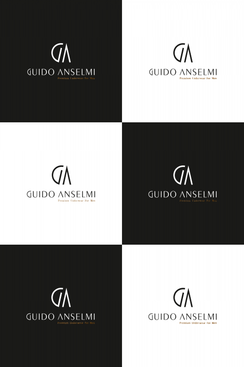 popracujmy nad dwoma ostatnimi rzędami (pierwszy z malym G w Guido usunmy z dalszych poprawek) 1. W nazwie Guido Anselmi kazda litera jest tak zbudowana ze czesc litery ma element cienszy i druga czesc litery ma elemnt grubszy (np. A w Anselmi ma lewa strone ciensza a prawa grubsza), czy mozemy analogicznie to zrobic z G w Guido? Chcialabym doparcowac projekt juz do konca, zadbac o kazdy detal i pełna spojnosc. 2. Troszke mniejsze odstepny miedzy literami w Guido Anselmi. 3. "Premium Underwear For Men" zrobmy troszke wieksza czcionke, a Guido Anselmi nieco zmniejszmy. Dodatkowo wciaz bede wdzieczna za uzycie innej czcionki - te obecne sa bardzo "komputerowe". Zalezy mi na czcionce prostej, eleganckiej