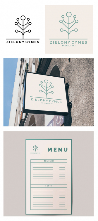 Poniżej dodałam oddzielnie sam logotyp. Kolorystyka do uzgodnienia. Sama nazwa ma nawiązywać do historii i kultury Kazimierza, "cymes" oznacza coś pysznego, rarytas. To słowo nie brzmi obco, weszło do języka polskiego. Przymiotnik "zielony" ma nawiązywać do ekologicznej idei Państwa kuchni. Razem tworzą nazwę przewrotną, zapadającą w pamięć i oddającą charakter miejsca, w którym restauracja się znajduje. W razie pytań proszę o kontakt.