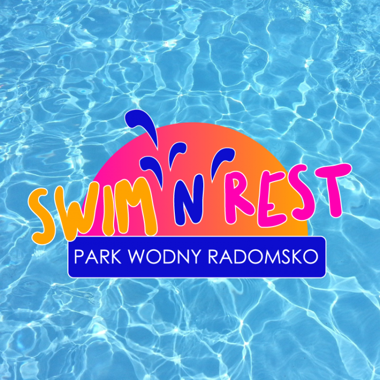 Logo familijnego parku wodnego. Nazwa SWIM'N"REST sugeruje zarówno pływanie, jak i wypoczynek.