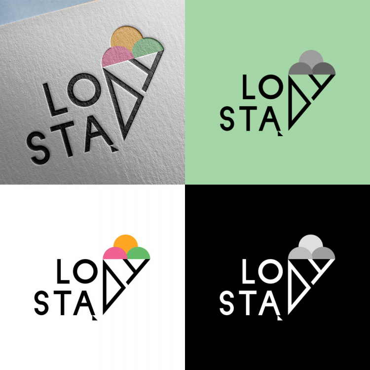 Nazwa dla lodziarni: Lody Stąd. Dostępne domeny: lodystad.pl, lodystad.eu, lodystad.com, lodystad.com.pl Geneza nazwy jest podobna jak w moim poprzednim projekcie. “Lody stąd” czyli lody rzemieślnicze, wytarzane z lokalnych produktów, sprzedawane w kameralnej lodziarni, gdzie każdy poczuje się "jak u siebie". Dodatkowo litery “D” i “Y” układają się w rożek na lody, tworząc bardzo prostą i minimalistyczną kompozycję. Kolorystyka znaku może zostać oczywiście zmieniona. W swoim wyborze kierowałam się przykładowymi smakami lodów: malinowy, pomarańczowy i pistacjowy.