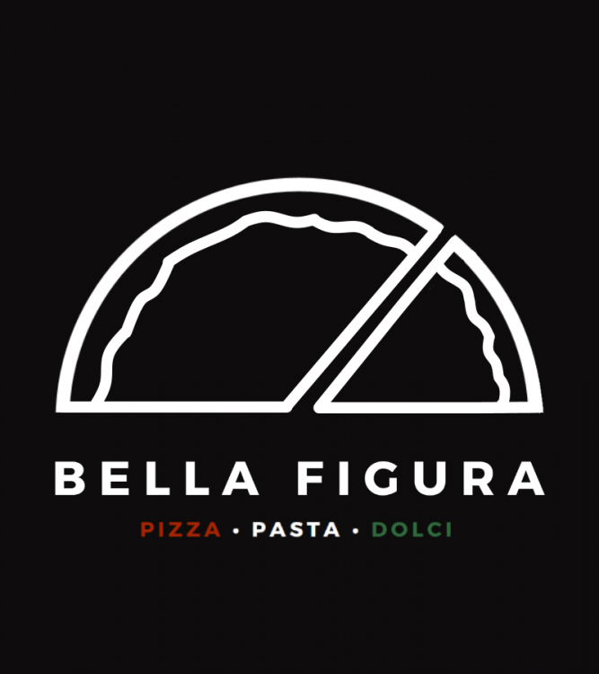 Bella figura po polsku oznacza "piękna figura", ale we Włoszech nawiązuje do prezencji, manier, ubioru i ogólnie pojętego stylu bycia, do którego powinno się dążyć, ideału. W pomyśle na logo nazwa wykorzystana jest przewrotnie - kontur pizzy jako włoski ideał.