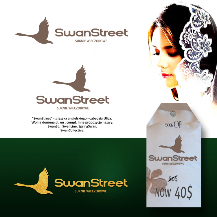 “SwanStreet” - z języka angielskiego - Łabędzia Ulica. Wolna domena pl, eu , compl. Inne propozycje nazwy: SwanSt. , SwanLine, SpringSwan, SwanCollective.