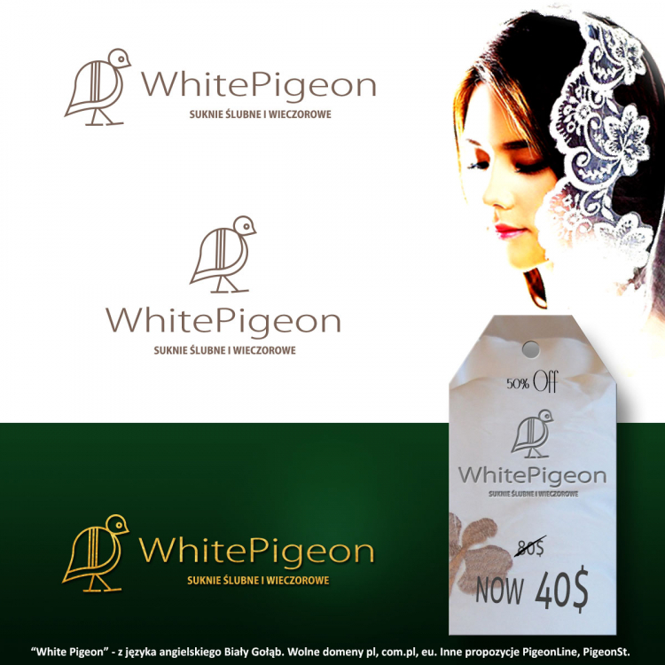 “White Pigeon” - z języka angielskiego Biały Gołąb. Wolne domeny pl, com.pl, eu. Inne propozycje PigeonLine, PigeonSt.