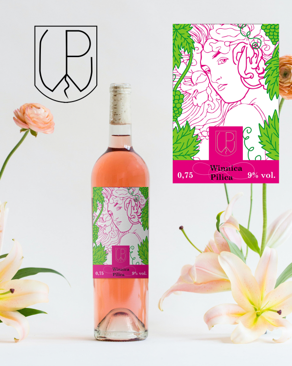 Logo i etykieta dla winnicy związanej z regionem Pilicy
