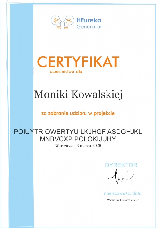Papier firmowy - certyfikat poświadczający udział w kursach