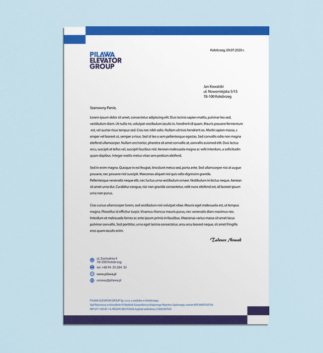 Papier firmowy dla firmy zajmującej się windami