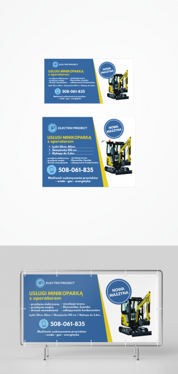 Baner reklamowy dotyczycący usług minikoparką oraz przecisku