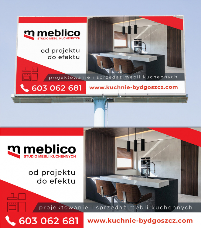Baner reklamowy dla firmy zajmującej się projektowaniem i wykonaniem mebli kuchennych