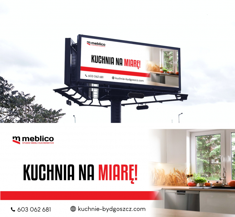 Baner reklamowy dla firmy zajmującej się projektowaniem i wykonaniem mebli kuchennych
