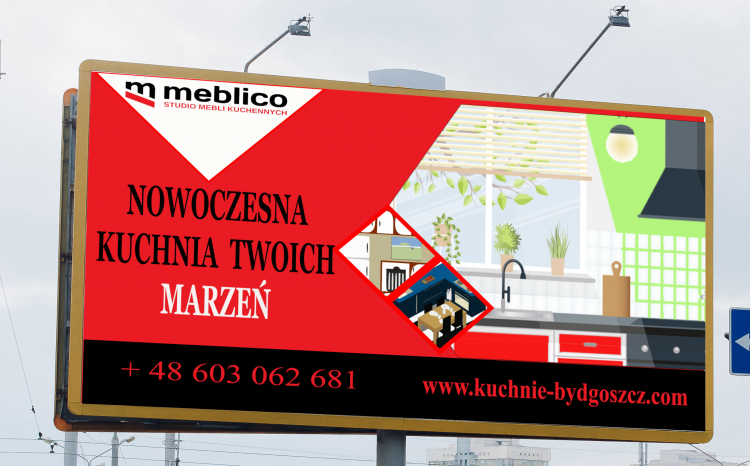 Baner reklamowy dla firmy zajmującej się projektowaniem i wykonaniem mebli kuchennych