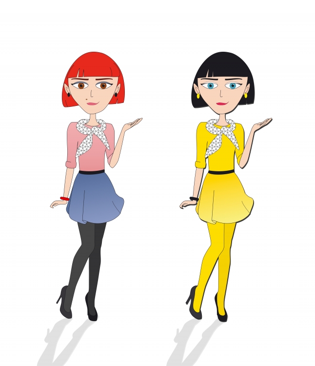 Postać z prawej posiada cień przez co wygląda troche jak wycięta z papieru, postać z lewej bardziej wtapia się w tło. Obie panie są intrygujące: brunetka ma hipnotyzujące spojrzenie, ruda - pieprzyk;)