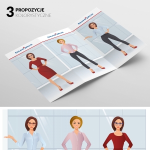 Postać: kobieta, względnie kobieta + mężczyzna; jeżeli kobieta i mężczyzna, to nie para, raczej znajomi z pracy. Postać pokazana ze szczegółami. Postać ani zabawna, ani poważna. Delikatna, subtelna, energetyczna, elegancka, ma intrygować. Nie może być śmieszna, zagubiona, agresywna. Ma być wesoła, mieć miłą aparycję, pozytywnie nastawiona do życia, tryskająca pozytywną energią, profesjonalna i kobieca. Postać to także taka przyjaciółka klienta, ale taka od serca, trochę na niej możemy się wzorować. Ma wzbudzać zaufanie, profesjonalizm ale trochę, gdyż nie może być elementów zazdrości, czy też zarozumialstwa.