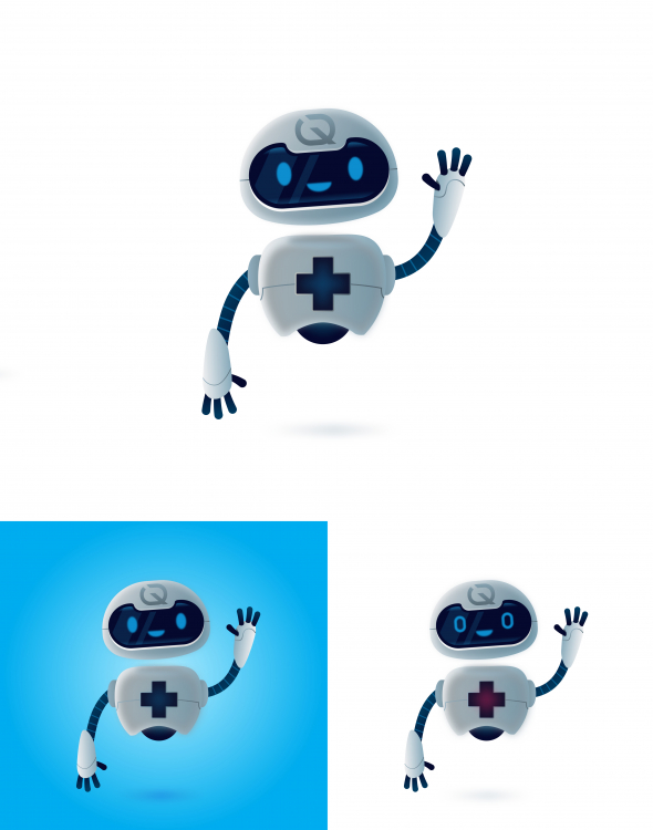 W odpowiedzi na państwa brief moim założeniem było stworzenie postaci, która łączy w sobie zarówno informatykę, technologię, jak i medycynę. Stworzyłam robota, który poprzez swoją przyjazną formę budzi skojarzenie z niezawodnym, nowoczesnym, ale i przyjaznym serwisem. Jestem otwarta na wszelkie uwagi i poprawki.