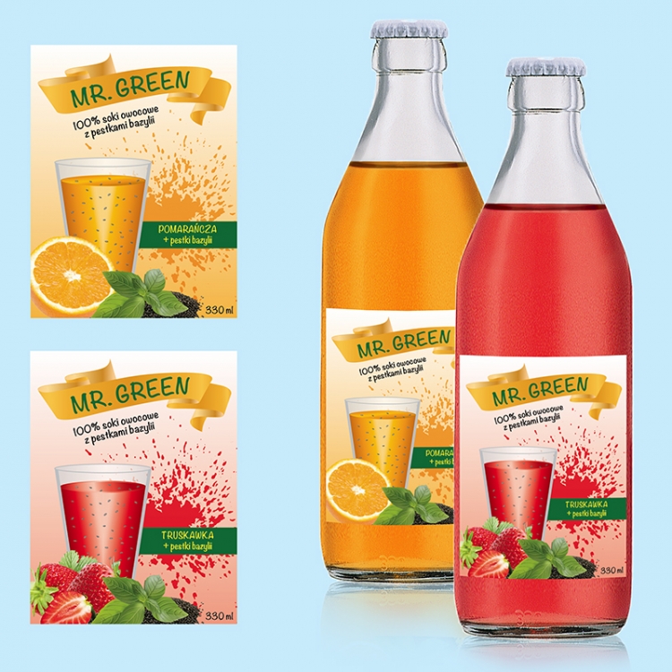 Etykieta dla napoju na bazie soków i nasion bazylii