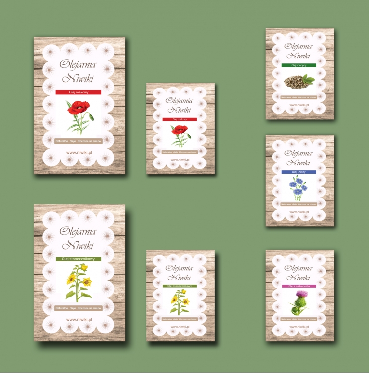 Projekty etykiet na naturalne oleje tłoczone na zimno