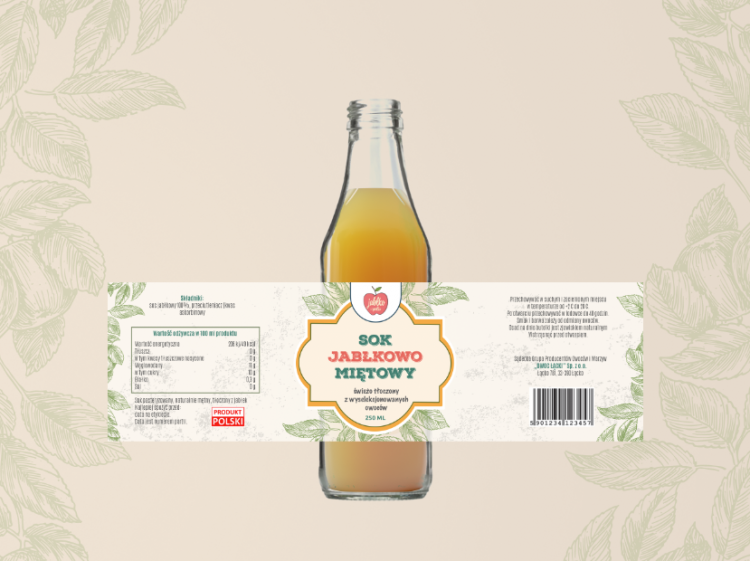 Etykieta i logo dla linii soków NFC na bazie jabłek