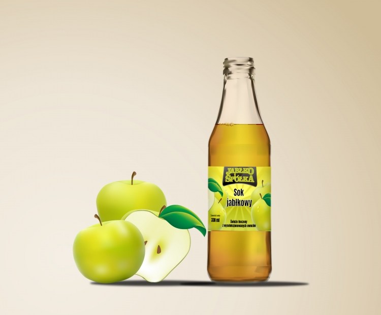 Etykieta i logo dla linii soków NFC na bazie jabłek