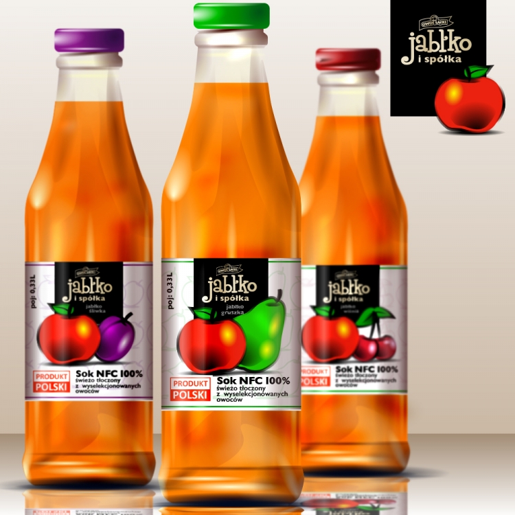 Etykieta i logo dla linii soków NFC na bazie jabłek