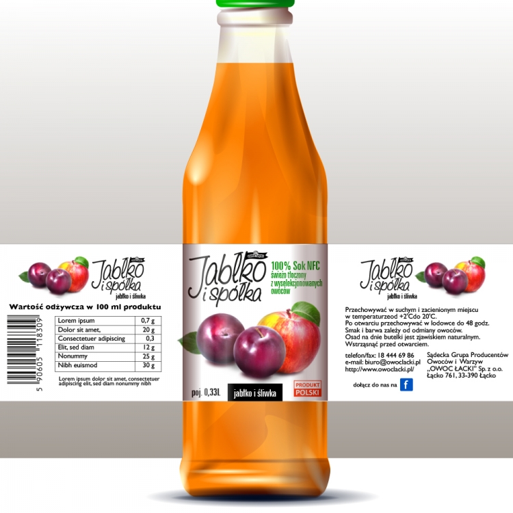 Etykieta i logo dla linii soków NFC na bazie jabłek