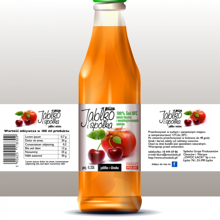 Etykieta i logo dla linii soków NFC na bazie jabłek