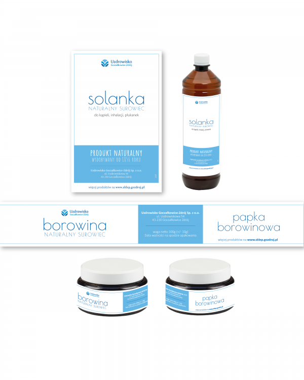 Etykieta "bazowa" do serii produktów leczniczych Uzdrowiska Goczałkowice-Zdrój: borowiny i solanki