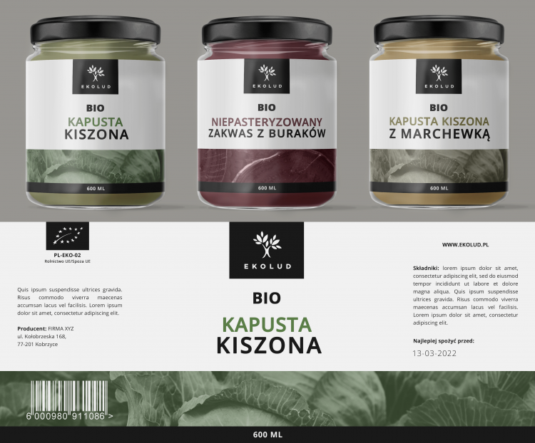 Trzy przykładowe słoiki wraz z przykładową etykietą. Poniżej przesyłam link do podglądu w lepszej jakości: https://i.imgur.com/gLf3Elx.jpg