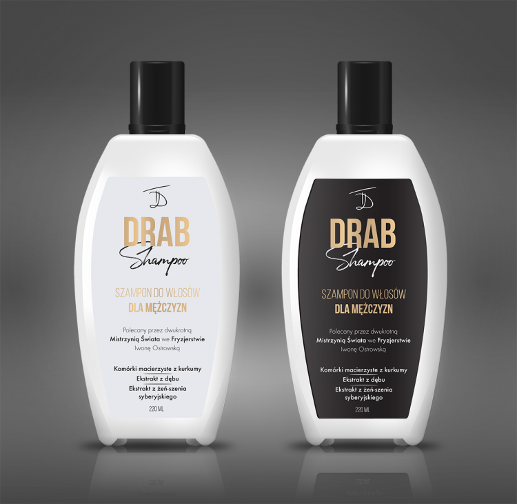 Nie ma problemu. Załączam nową wersję. Produkt ekskluzywny może być również w wersji czarnej. Taka etykieta dobrze komponuje się z kolorem nakrętki. Wygooglałem, że może chodzić o Iwonę Ostrowską i umieściłem wzmiankę o mistrzostwie pośrodku. Na białej etykiecie kolor srebrny zniknie, dlatego czerń i złoto pasuje tu najlepiej. Jeszcze lepiej wygląda to na wersji czarnej. Tutaj można też dać "Shampoo" na srebrno. Efekt będzie widoczny przy druku na folii metalizowanej.