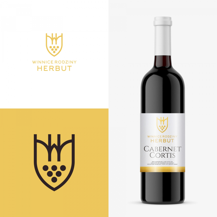 Rodzina > herb, litery HW, winnica, skojarzenie z piwnicą, łuki
