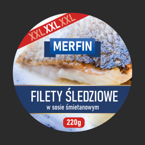 Projekt graficzny będzie używany: Dla produktu: Śledzie w sosie śmietanowym.