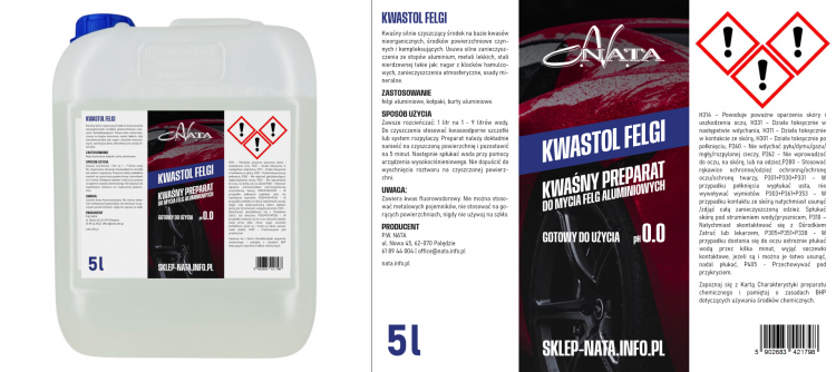Ze względu na dużą ilość tekstu przy ostrzeżeniach pozwoliłem sobie przenieść dane o producencie na lewą kolumnę etykiety. Docelowo, w zależności od serii produktowej, kolorystyka akcentów (elementów granatowych) będzie zmienna. Istnieje także możliwość podmieniania zdjęcia w tle środkowej kolumny. Piktogramy znajdują się, zgodnie z Państwa prośbą, na polu o wymiarach 46x35mm.