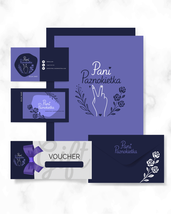 Logo, voucher, wizytówka i ulotka dla firmy z branży kosmetycznej