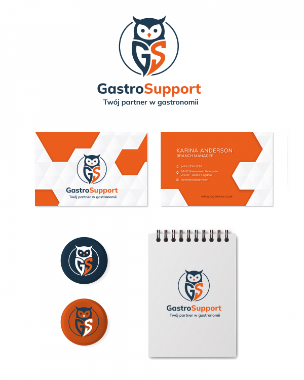 Logo, wizytówka i przykłady zastosowań dla firmy z branży gastronomicznej