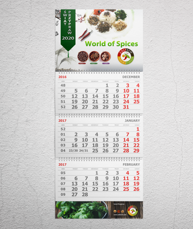 Projekt główki oraz plecków do kalendarza trójdzielnego