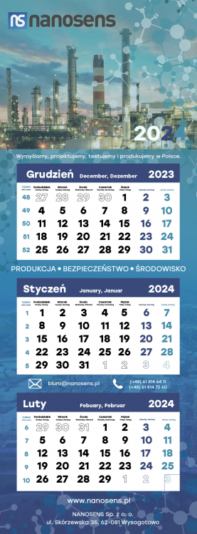 Kalendarz trójdzielny dla firmy z branży urządzeń pomiarowych