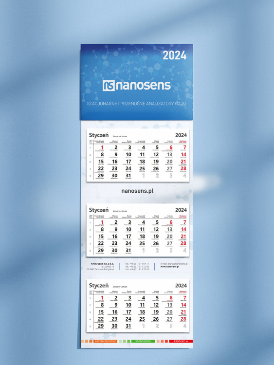 Kalendarz trójdzielny dla firmy z branży urządzeń pomiarowych