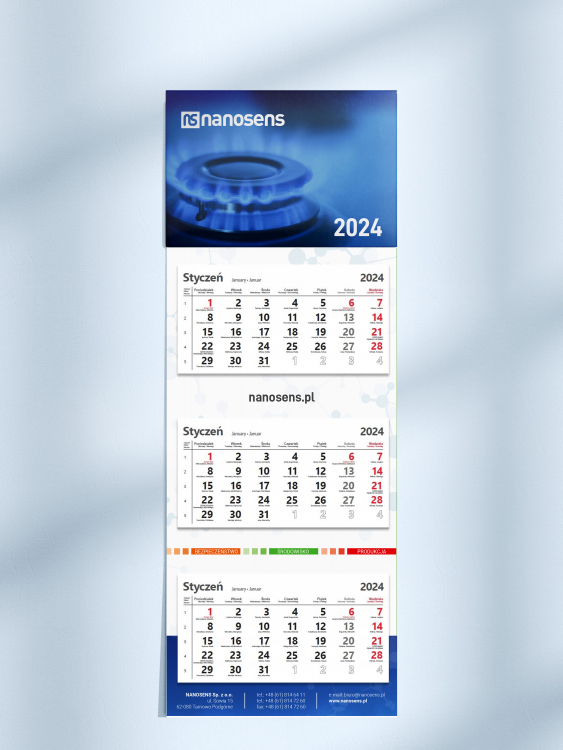 Kalendarz trójdzielny dla firmy z branży urządzeń pomiarowych