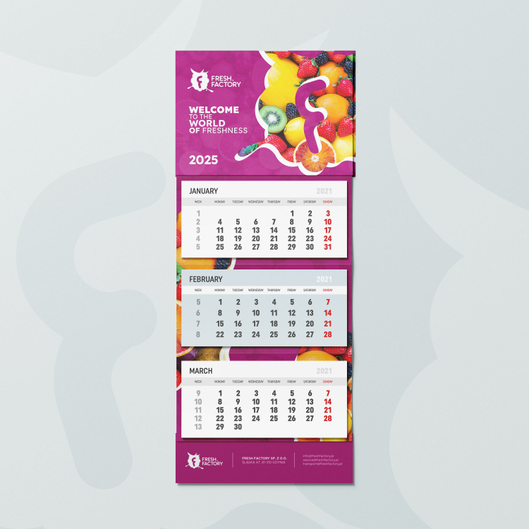 Kalendarz trójdzielny dla firmy z branży owoce/warzywa