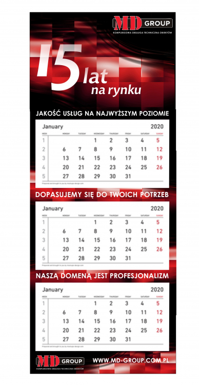 Dokładne rozmieszczenie napisów wykonam na siatce kalendarza. Konkretnego modelu trójdzielnego z drukarni. Logo wektorowe też będzie potrzebne.