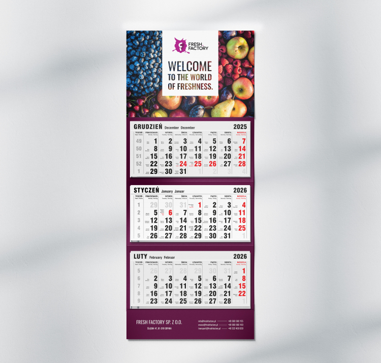 Kalendarz trójdzielny na rok 2026