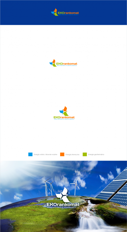 Kolory mają znaczenie, ich geneza wyjaśniona w projekcie. Ponieważ wiadomo, że energia odnawialna nie pochodzi jedynie z wiatru, projekt nie zamyka się jedynie na "wiatraki" jest uniwersalny . Trzy symbolizujące poszczególne sektory strzałki, schodzą się w jeden punkt ....w jednym miejscu. Przestrzeń jaka pozostaje pomiędzy strzałkami, dyskretnie/niebezpośrednio pozostawia zarys śmigieł elektrowni wiatrowej. Czekam uwagi / sugestie / opinie. Pozostaję do dyspozycji.