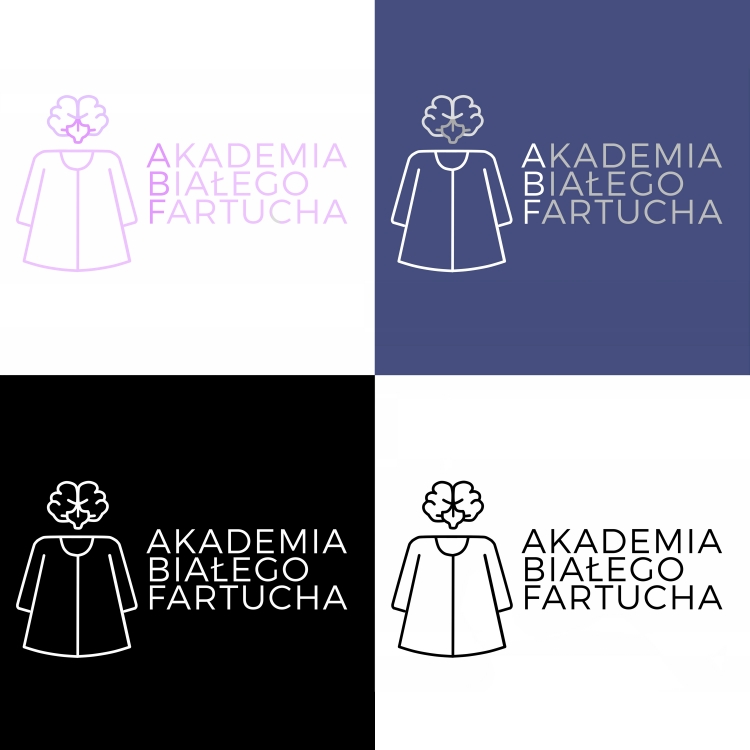 Projektując logo miałam na uwadze uniwersalność, pokazanie że biały fartuch jest dla każdego kto ceni wiedzę. Dobierając kolory zwróciłam uwagę na to aby nie były monotonne i łatwe do przeoczenia, ale także żeby nie były zanadto jaskrawe co mogło by onieśmielać. Kierowałam się uczuciami jakie wywołują poszczególne barwy. Fiolet symbolizuje widzę oraz kreatywność a skala szarości-balans i statyczność. Zastosowałam line art oraz miękkie, zaokrąglone linie aby ograniczyć dynamikę grafiki i uniknąć nadmiaru detali, co mogłoby odstraszać młode osoby. Logo ma odzwierciedlać stabilność oraz przyjazną atmosferę firmy.