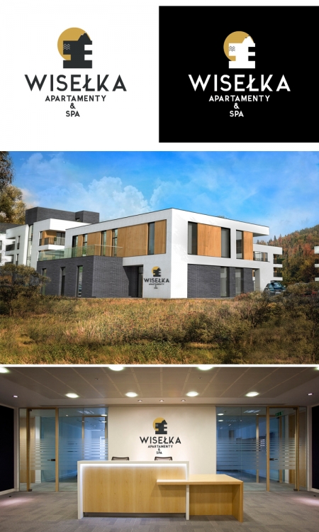 Przesyłam Państwu moją propozycję. Grafitowy element użyty w logo to kształt budynku Państwa apartamentów, na budynku umieściłam symbol wody, który kojarzy się z nazwą "Wisełka" no i oczywiście góry, które wychodzą zza budynku, całość dopełnia żółty element, który nadaje dynamiczności całości. Typografia może być dowolnie modyfikowana w zależności od potrzeb. Jestem otwarta na uwagi. Pozdrawiam