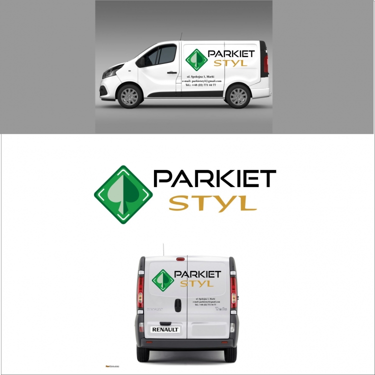 Logo dla firmy z branży parkiety - podłogi - listwy wraz z koncepcją oklejenie auta