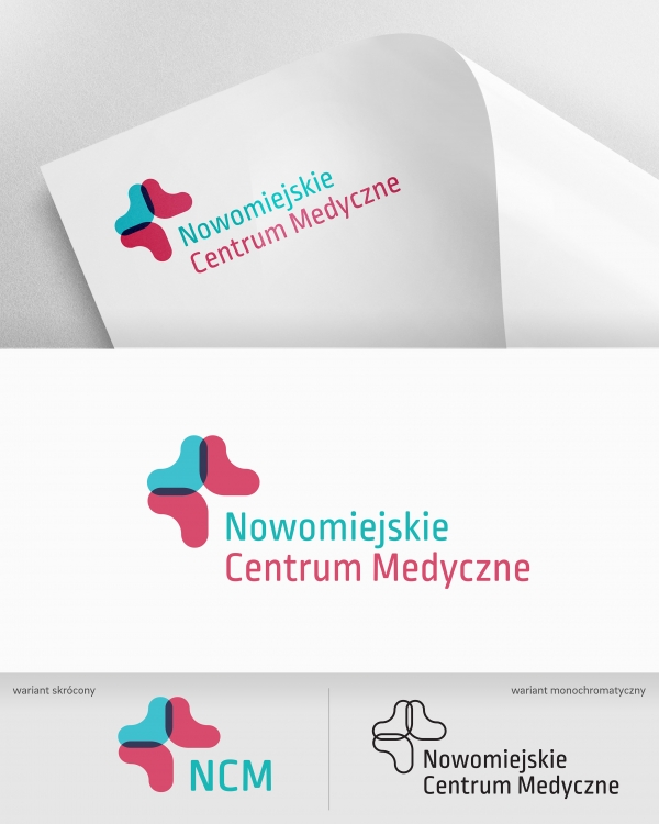 Znak równoramiennego krzyża, charakterystyczny dla oznaczania placówek służby zdrowia, został stworzony przy użyciu trzech organicznych form. Znak zaprojektowany jest w ciepłej kolorystyce (użycie czerwieni może kojarzyć się z sercem), a całość uzupełnia zmiękczony i przyjazny dla oka krój pisma. Przewidziano wersję skróconą logo (do aplikowania na „trudnych” materiałach, np. długopisach) z akronimem NCM.