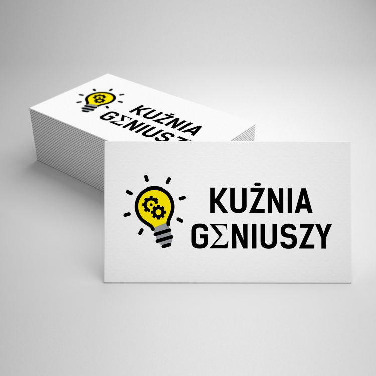 Żółto szara żarówka, wyśrodkowany napis Kuźnia oraz "ogonek "ź" wzięty z poblasku żarówki