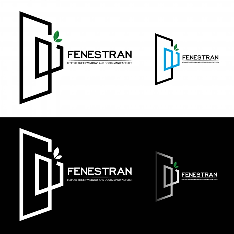 Graficzna kompozycja - połączenie okna i drzwi , z elementem drobnych liści - sugerującymi drewno. Projekt w kilku wariantach kolorystycznych.